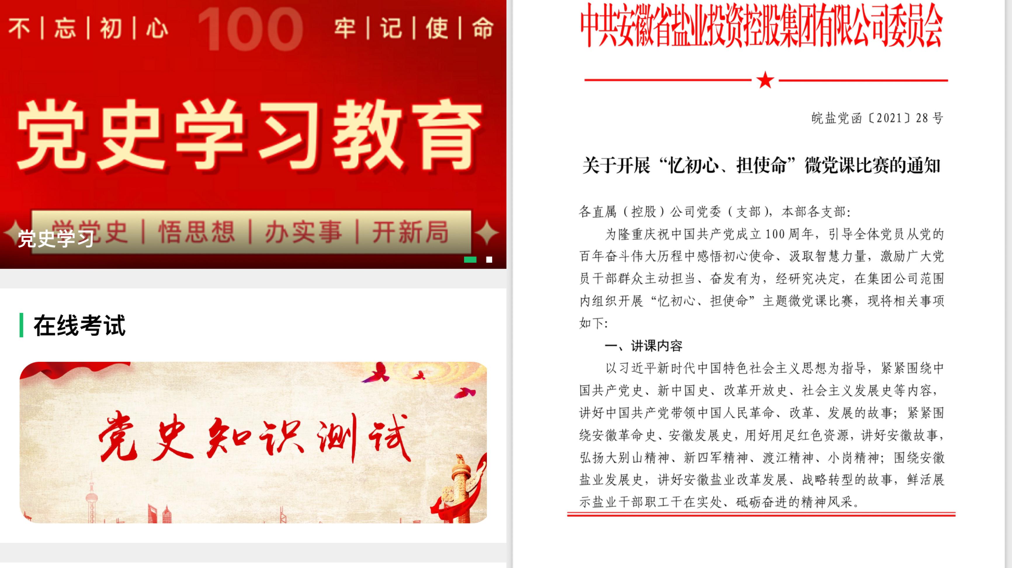 搭建平臺云端講。集團黨委不斷加強對“互聯網+”工作模式積極探索,在黨課方式方法上下功夫,力求黨課有深度見實效。今年3月,正式上線“鹽業學習強企”小程序,4月初開設黨史學習教育專欄,設中共簡史、歷史微故事、精神譜系三個學習專題,陸續發布中共簡史專題31篇,推送《新四軍智斗日本兵》、《湘江作證》等歷史微故事23個,專題解讀井岡山精神、長征精神等黨的精神譜系11篇,一個個鮮活的紅色故事走上“云端”,系統1000余名黨員“零距離”感受紅色力量。充分用好優秀黨課云資源,將《百煉成鋼:中國共產黨的100年》微記錄片融入支部學習日常,以理論+視頻學習的方式,打開黨史記憶,傾聽百年回響。亢慕義齋油墨飄香、老漁陽里孕育初心......100個重要事件,100個歷史故事,以動畫、沙畫、情景再現的方式重現,廣大黨員在生動的敘事中見證中國共產黨百年壯闊征程,汲取奮進新時代的智慧和力量。