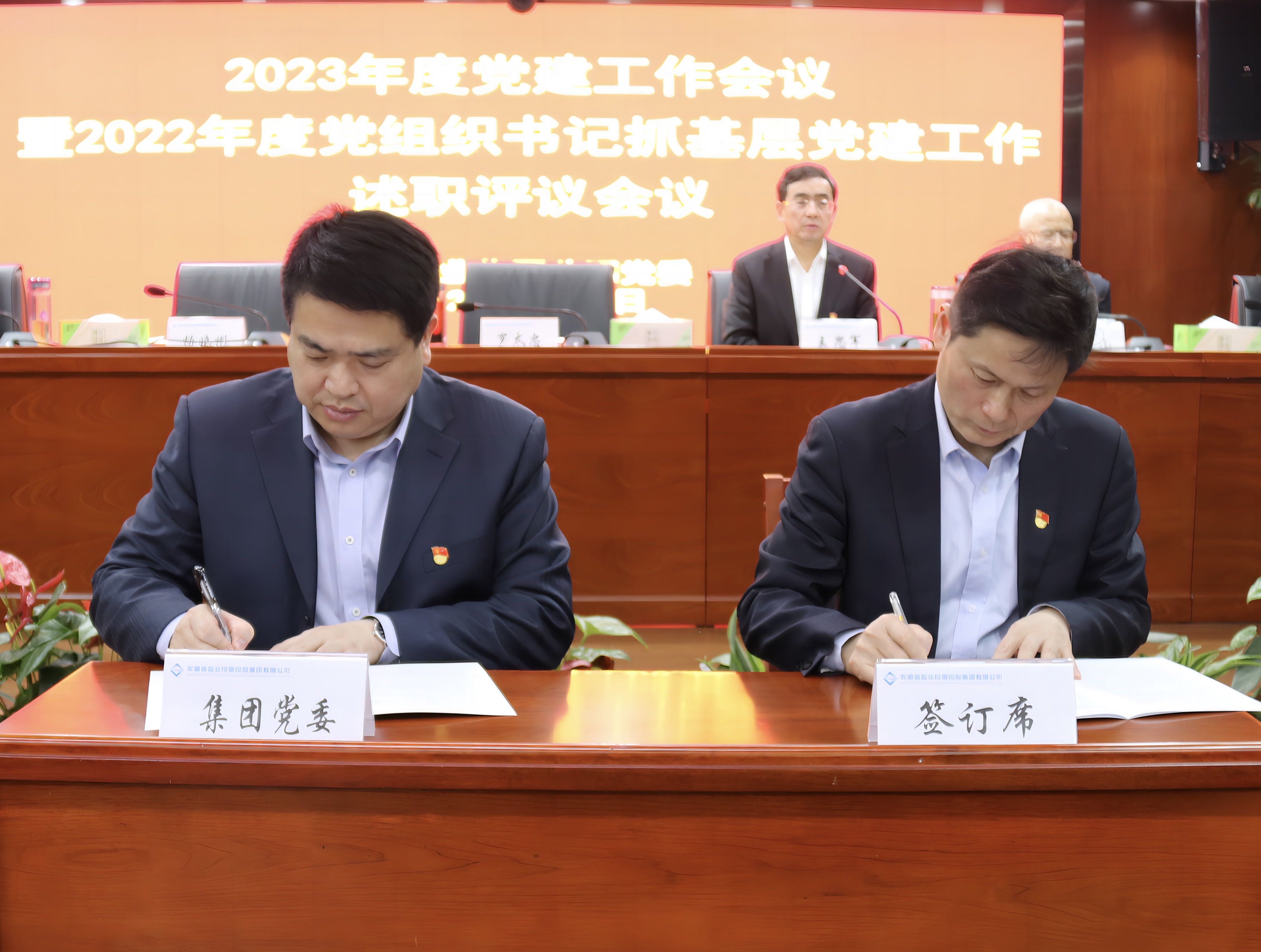 會上,集團黨委分別與集團班子成員簽訂黨建工作“一崗雙責”責任書,與所屬單位負責人簽訂黨建工作“第一責任人”責任書,并開展了2022年度黨組織書記抓基層黨建工作述職評議。羅太忠對三家現場述職的黨組織書記工作開展情況進行一一點評,并對下一階段提出工作提出具體要求,與會人員現場進行評議打分。會議還重點對2023年度集團公司黨的建設工作進行了安排部署。