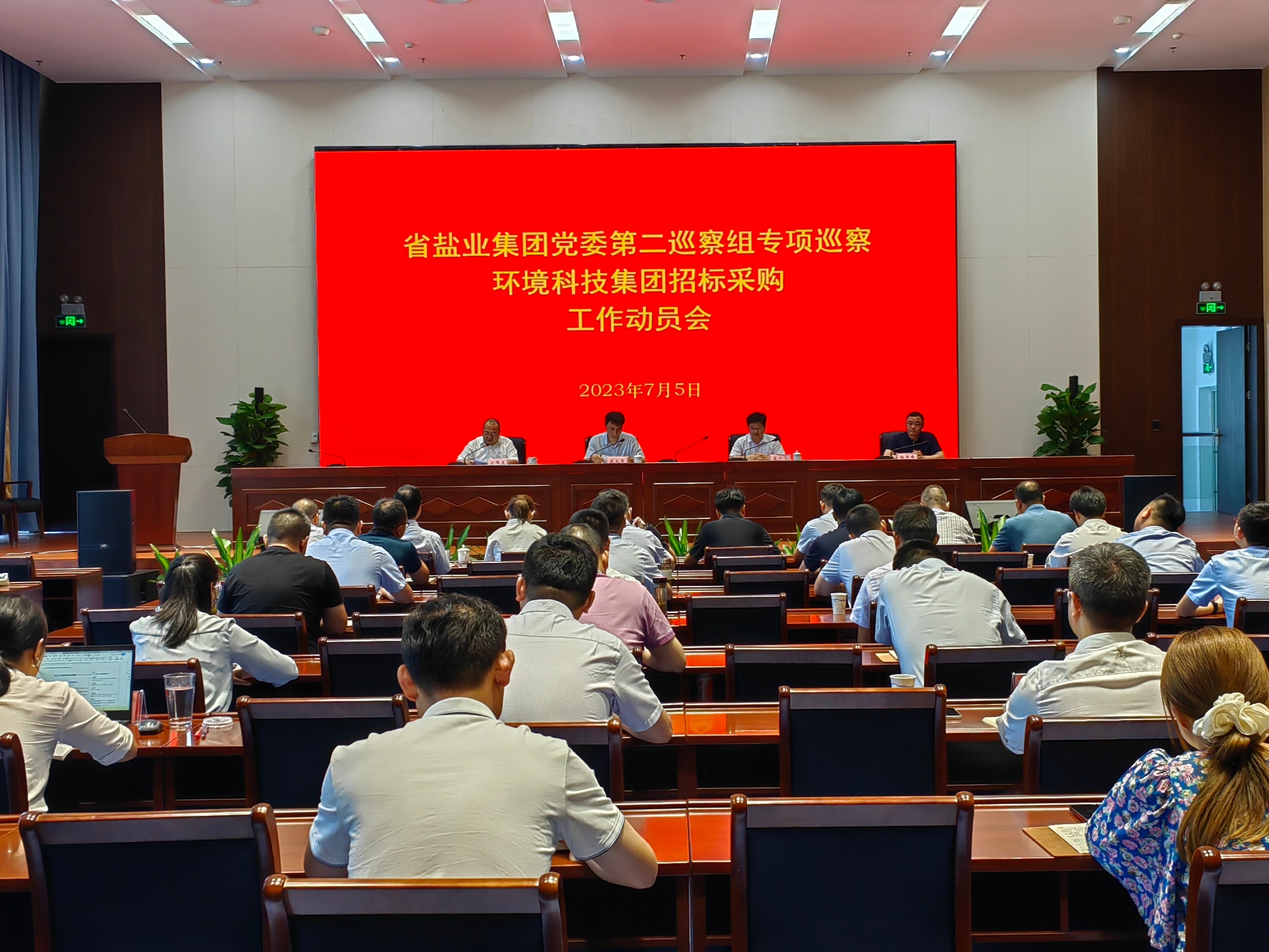 根據(jù)省鹽業(yè)集團(tuán)黨委統(tǒng)一部署,7月5日,省鹽業(yè)集團(tuán)黨委第二專項(xiàng)巡察組巡察環(huán)境科技集團(tuán)招標(biāo)采購工作動(dòng)員會(huì)召開。會(huì)上,集團(tuán)紀(jì)委副書記、黨委巡察辦主任武大軍傳達(dá)上級(jí)巡視巡察工作指示精神和集團(tuán)黨委巡察工作部署要求;第二專項(xiàng)巡察組組長(zhǎng)高廣飛通報(bào)巡察任務(wù)和總體安排,對(duì)配合巡察工作提出要求;環(huán)境科技集團(tuán)黨委書記、董事長(zhǎng)方降龍主持會(huì)議并做表態(tài)發(fā)言。第二專項(xiàng)巡察組成員,環(huán)境科技集團(tuán)領(lǐng)導(dǎo)班子成員,各職能部門、所屬各單位負(fù)責(zé)人和部分職工代表參加會(huì)議。