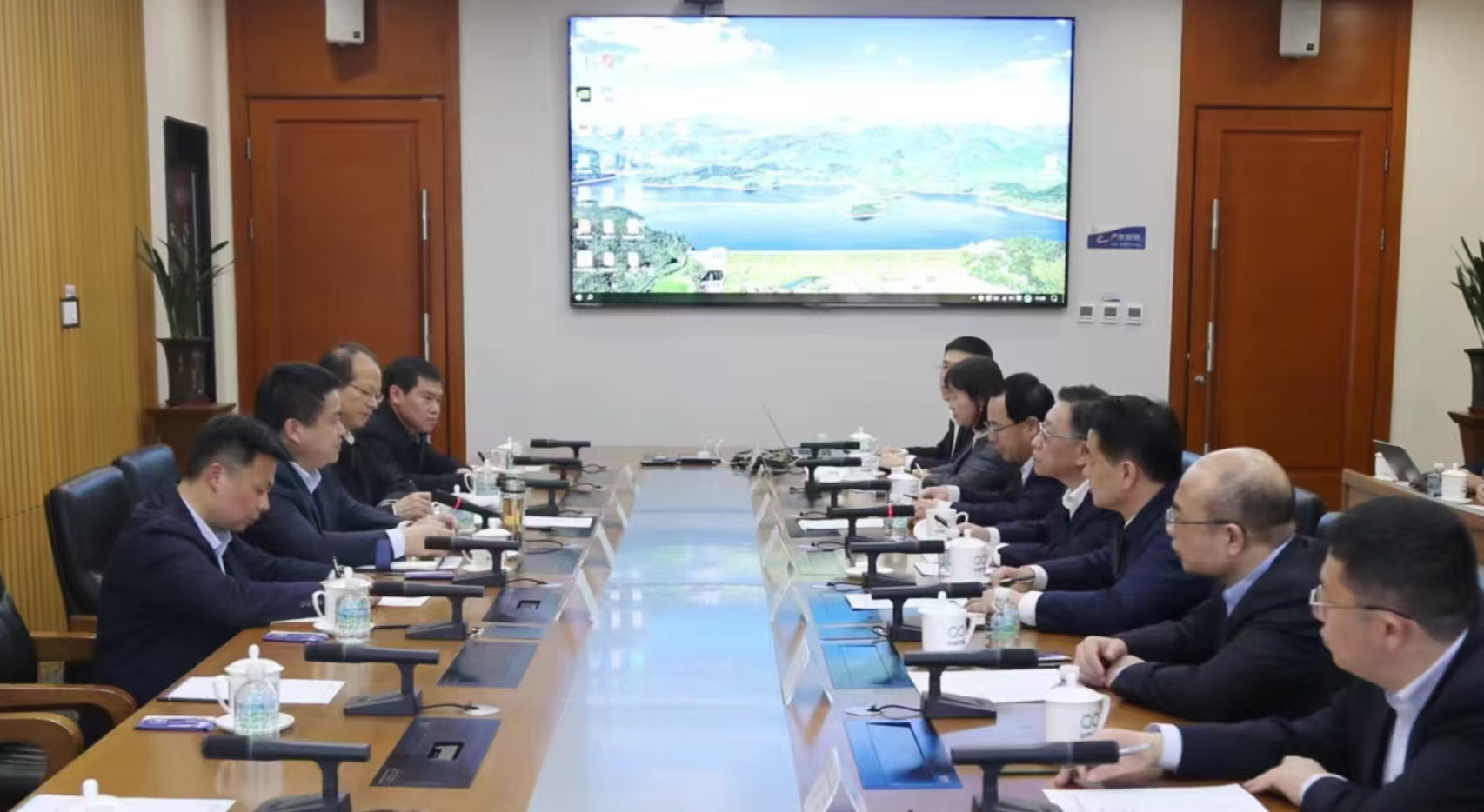 中國節(jié)能環(huán)保集團領導杜樂、省生態(tài)環(huán)境集團領導張小忠,雙方有關單位和部門負責同志參加會談。