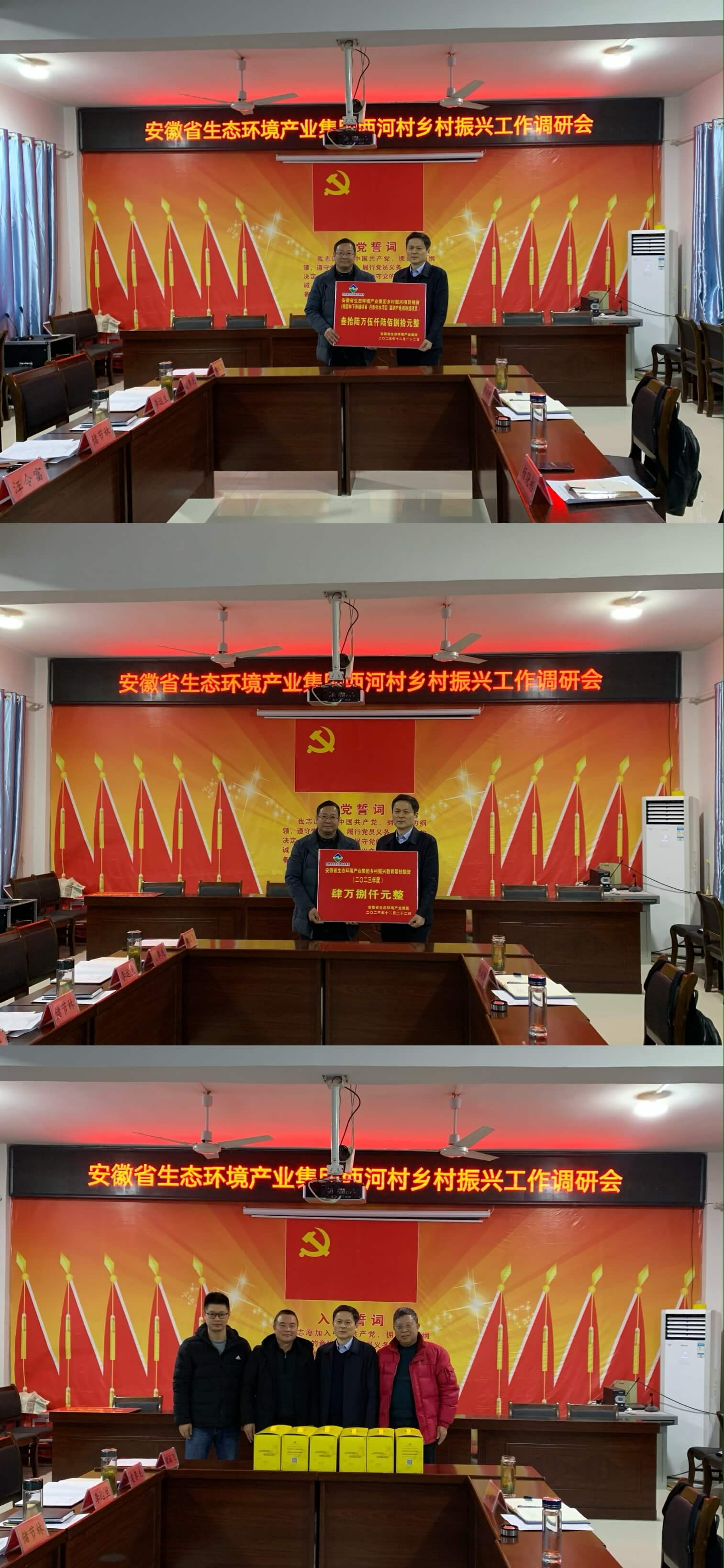 會后,雙方開展了集團2023年度項目幫扶和教育幫扶捐贈儀式,同時楊曉彬代表集團公司黨委為駐村工作隊隊員送上“關心關愛”物資,向他們表示慰問。