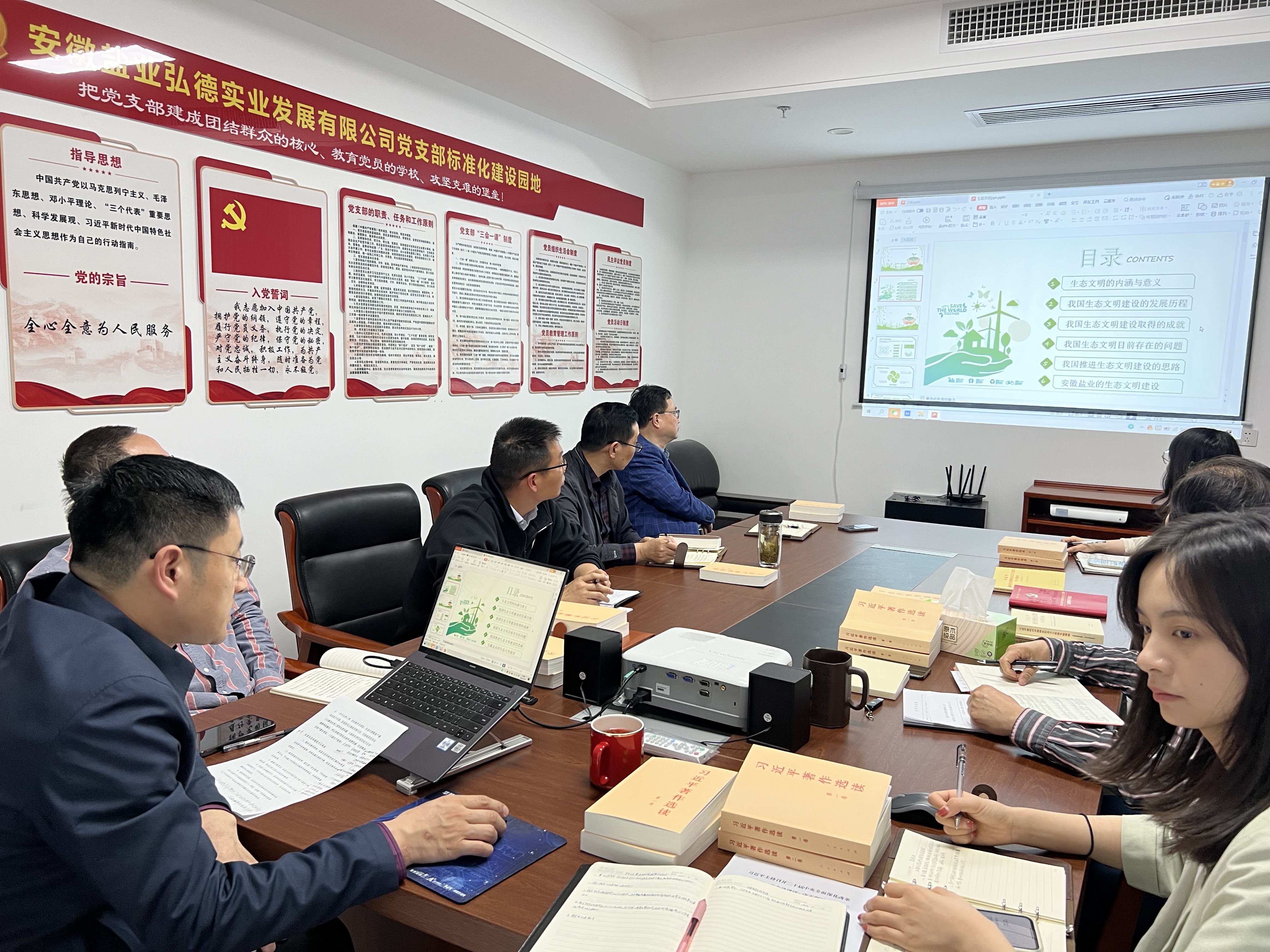 黨課聚焦生態文明,推動可持續發展主題,覆蓋本部及所屬各4S店全體黨員和中層以上管理人員,圍繞“四個講清楚”,從生態文明的內涵與意義,到我國生態文明建設的發展歷程、取得的成就、存在的問題和推進思路等五個維度,重點圍繞安徽鹽業生態文明建設工作,闡述了推進生態文明建設和做好生態文明建設的重大意義。